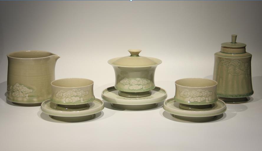 今年是瓯窑第二次参加景德镇瓷博会,温州瓯忆瓯窑研发设计中心总经理黎刚平带来了瓯窑新品缥瓷?缥缃系列展品,博得了业内和观展者的关注和好评。缥瓷、缃瓷,是青瓷瓯窑中上品。缥指的是淡青或浅青色,古人嗜书如命,好书往往选用珍贵的缥(淡青色)、缃(浅黄色)两种丝帛的料子做书囊书衣。这样古代就用缥缃泛指书卷,也使两种料子弥漫着淡淡的书卷气息。古人惊叹于瓯窑烧制中变幻莫测充盈淡青色的釉水,便赋予缥瓷缃瓷之美名,彰显了青瓷瓯窑的文化价值,也奠定瓯窑的历史地位。