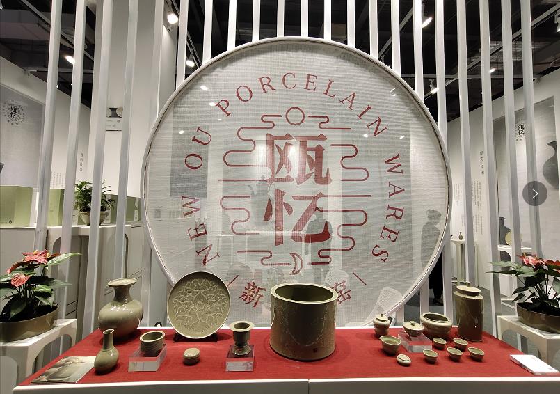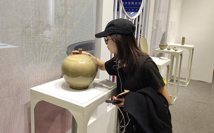 此次温州永嘉瓯忆瓯窑研发设计中心带来了文房、镶器、赏器、茶具,加以产品墙面的展陈介绍,参观者走进展厅,便可了解和认识青瓷瓯窑,它以其质朴外形和深厚的文化背景,打动了陶瓷爱好者。