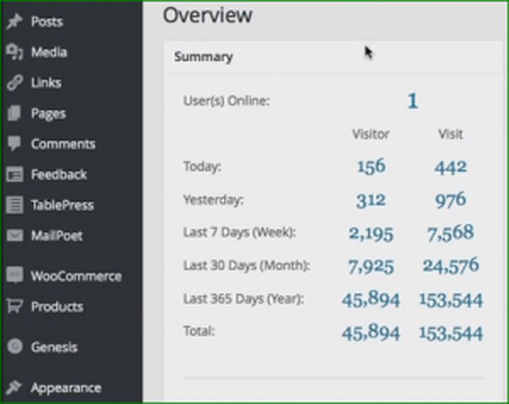 2) 昨天有312个的浏览者查看了976个不同网店页面。